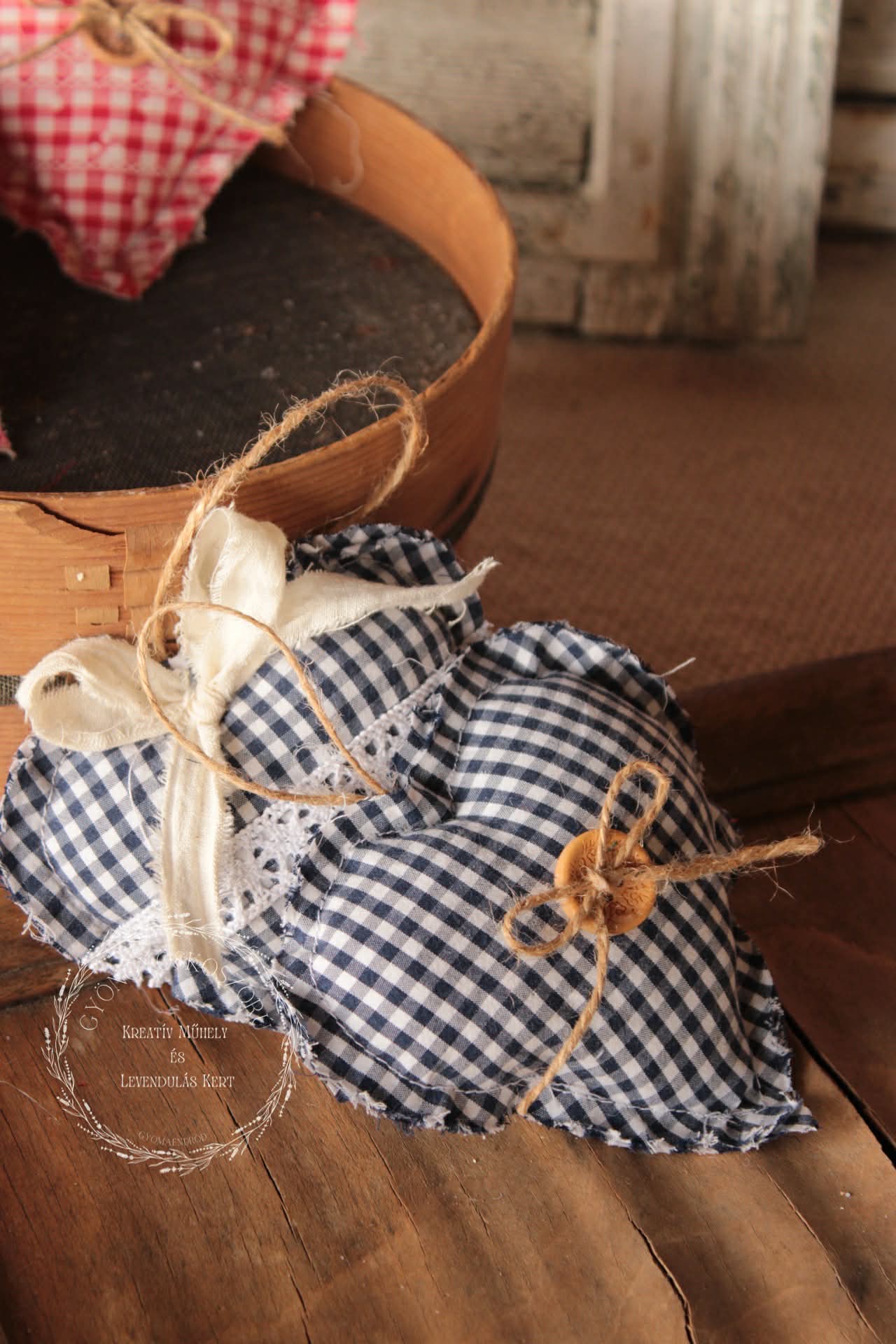 Ezek a kis textil szívek újrahasznosított anyagokból készültek, egyenként, varrógéppel varrva.